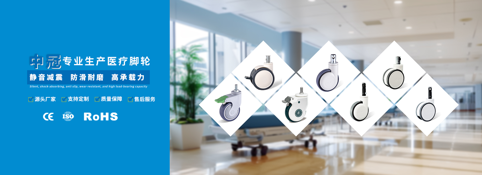 無(wú)錫市中冠醫(yī)療設(shè)備有限公司無(wú)錫市中冠醫(yī)療設(shè)備有限公司(簡(jiǎn)稱(chēng)中冠腳輪)是中國(guó)醫(yī)用腳輪專(zhuān)業(yè)制造商,公司成立于2009年,是一家專(zhuān)注于醫(yī)用腳輪的創(chuàng)新、研發(fā)、制造、銷(xiāo)售和服務(wù)為一體的高新技術(shù)企業(yè)。現(xiàn)已形成覆蓋醫(yī)用腳輪市場(chǎng)的多個(gè)系列數(shù)百個(gè)品種的產(chǎn)品線(xiàn),已成為中國(guó)具有規(guī)模并擁有多項(xiàng)自主知識(shí)產(chǎn)權(quán)的醫(yī)用腳輪創(chuàng)新型企業(yè)。