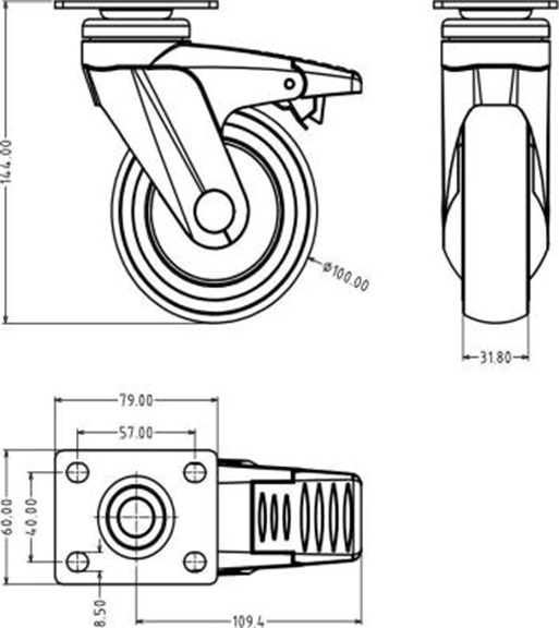 系列:57系列單片全塑有剎腳輪