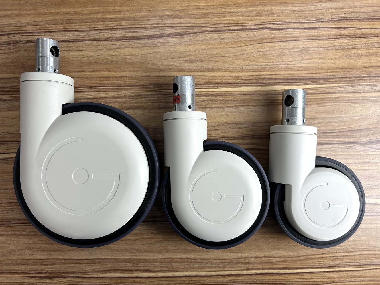 66系列是配有中心鎖定、全鎖定的豪華中控腳輪, 精鋼壓制框架主體,精密滾珠軸承位于旋轉頭內,輪架配有合成材料制的輪蓋, 適用鎖定控制桿配 有凸輪孔的輪桿,選配長桿和短桿式. 聚酰胺制輪芯, 熱塑性彈性體注塑輪胎面, 精密滾珠軸承,密封結構防水防油防纏繞。